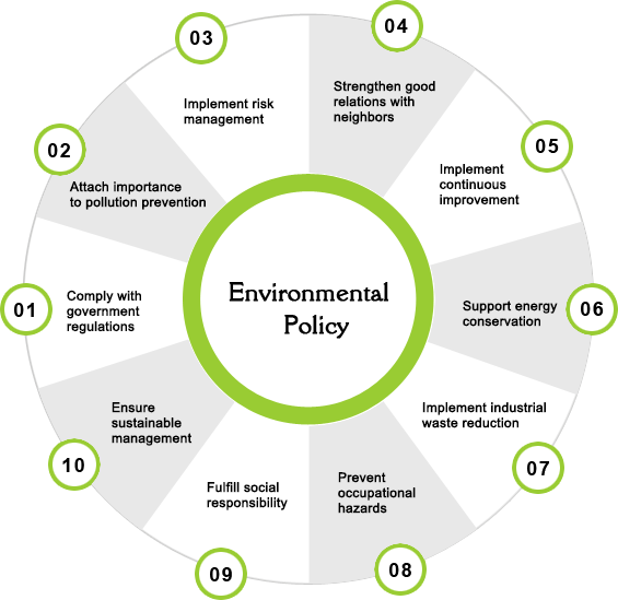 Promising Earth a sustainable future: Since its foundation in 1967, the Company has always taken concrete actions in response to government policies. We have always insisted on an operation philosophy attaching equal importance to the environment and the economy, while constantly strengthening the implementation of pollution control. We took the lead to introduce two 150HP pulse bag type dust collectors in Erlin Plan in 1993 to realize industrial waste minimization. The new Changbin plant further allotted a huge budget to purchase the new 250HP stainless steel pulse bag type dust collecting equipment to reduce the pollutants from the manufacturing process, to be socially responsible, and to enhance the corporate image, thereby ensuring sustainable business.